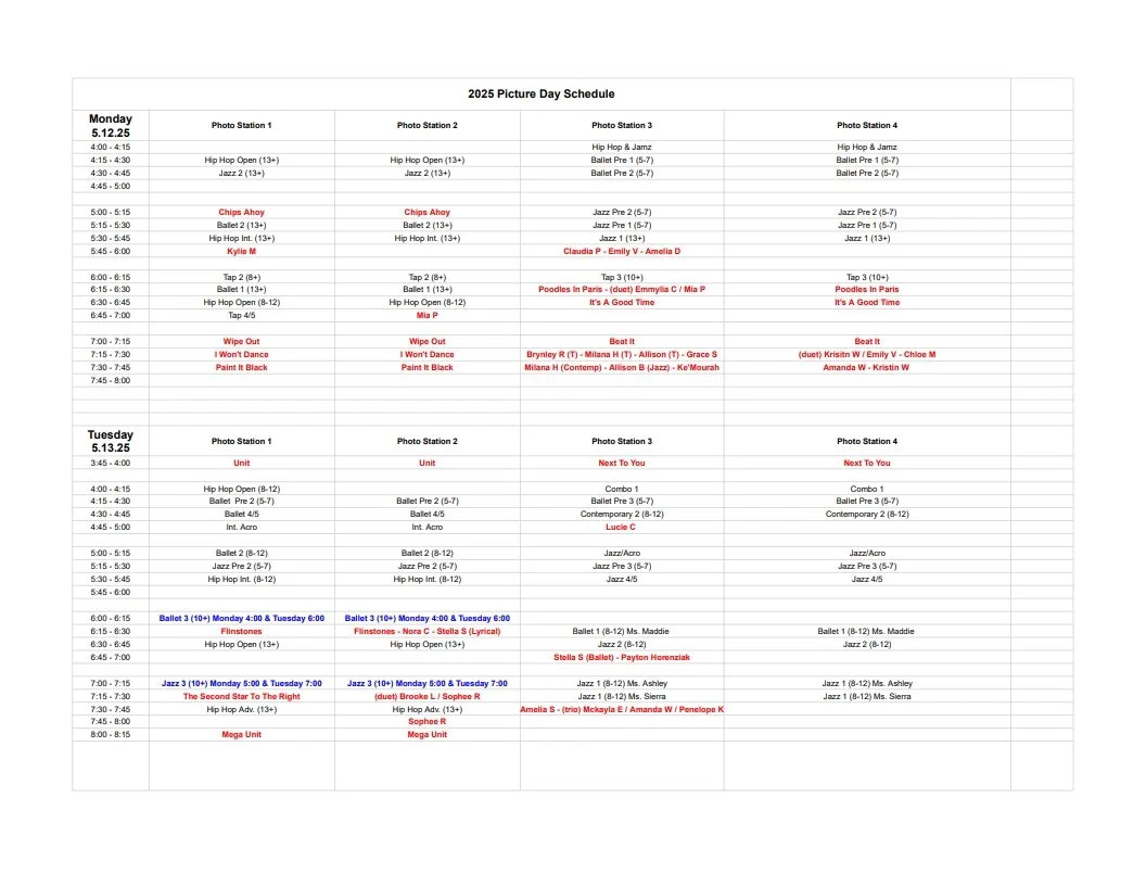 It’s time to get ready for Picture Week at Dance Dynamics — happening for all recital classes and teams!